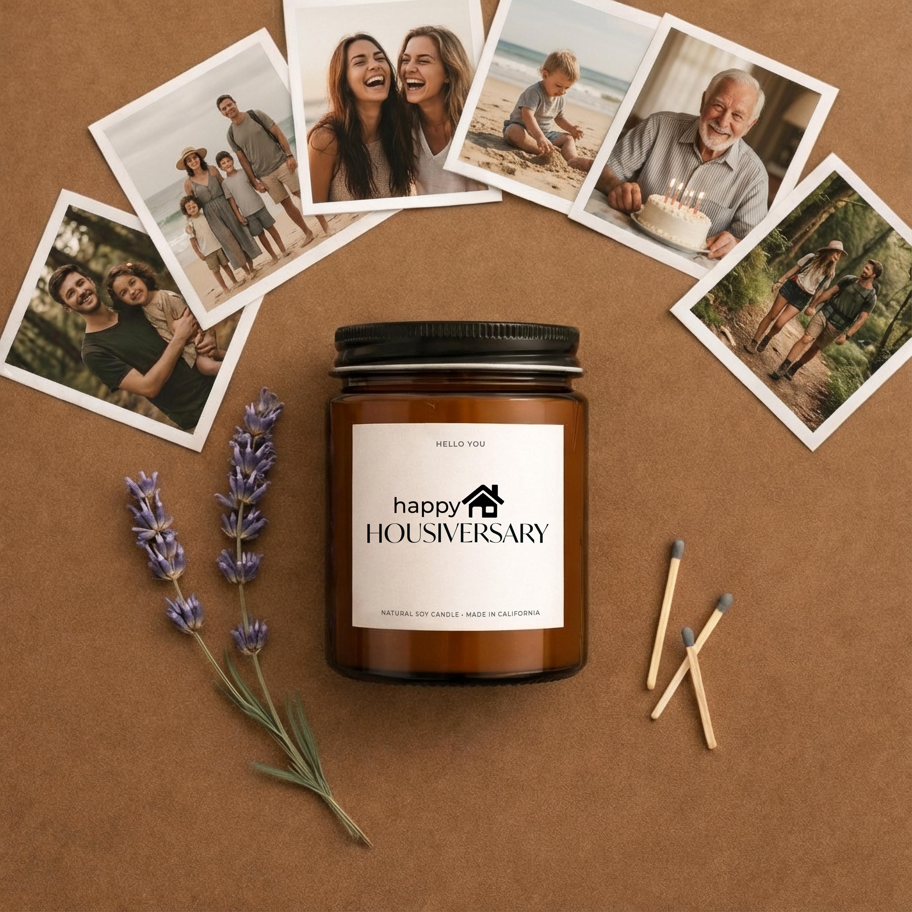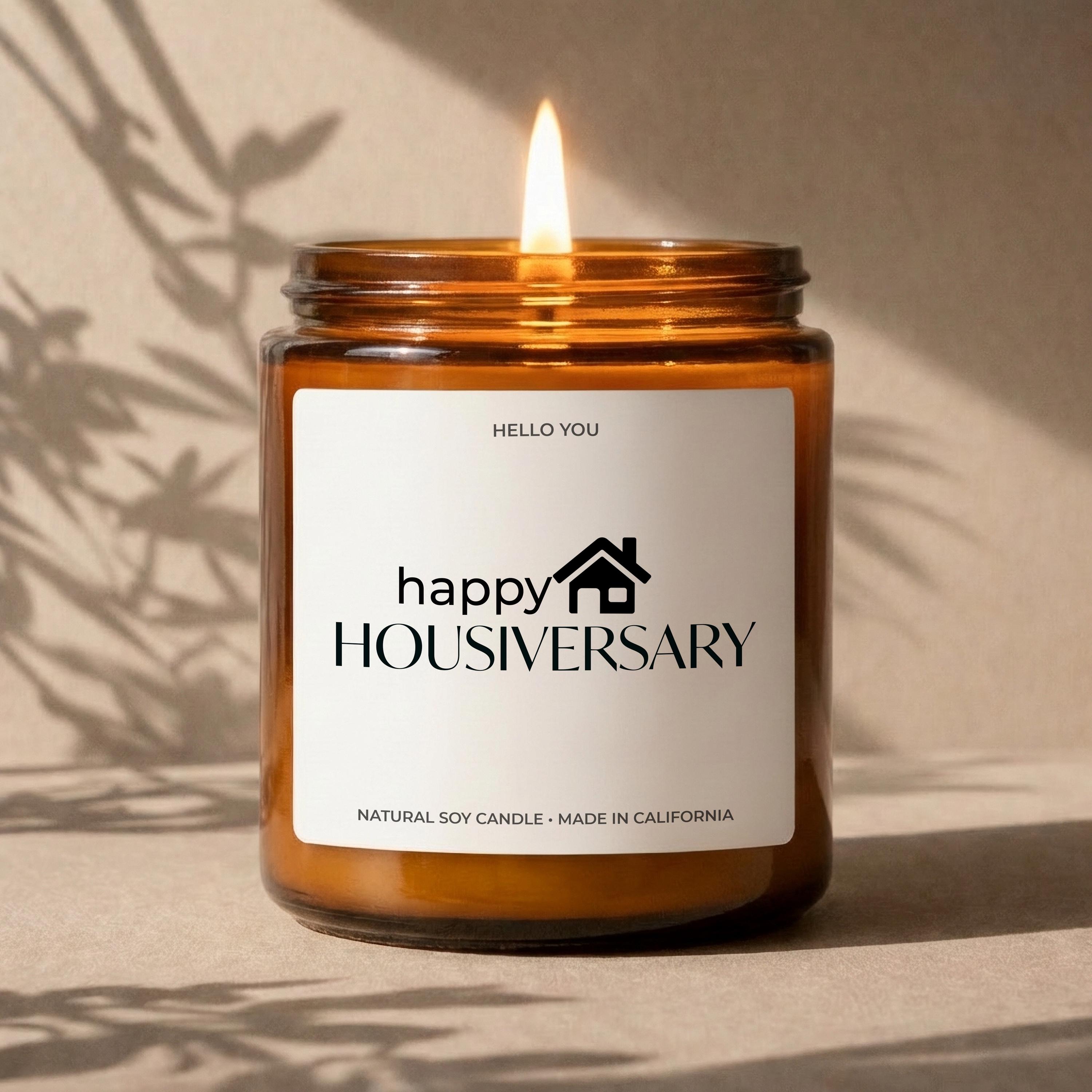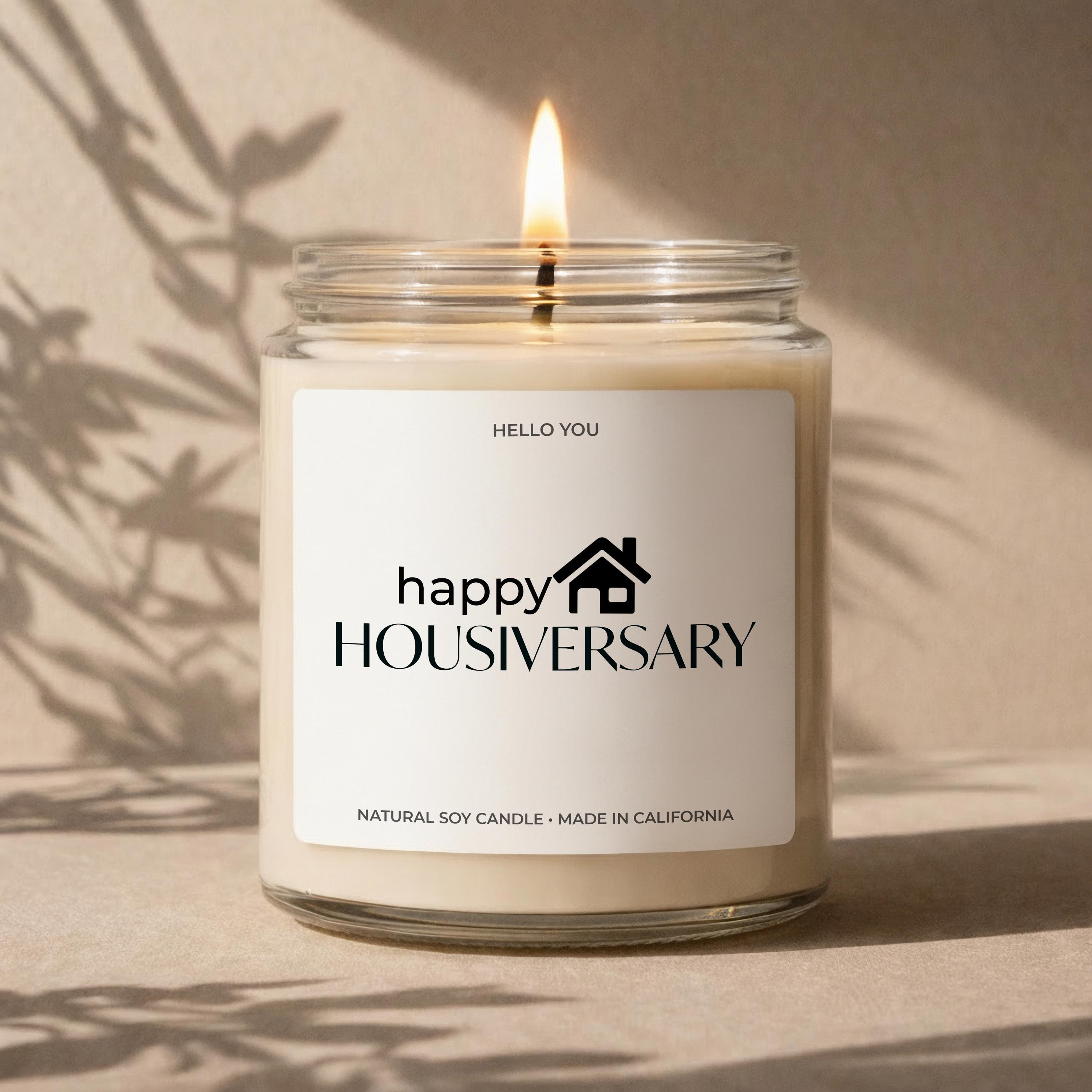 Hi, welcome to Hello You Candles! Our Housiversary Gift Candles are made with 100% American grown, eco-friendly soy wax, and we only use clean burning fragrance and essential oils to scent our candles. Our candles are always free of dyes, harsh chemicals and pollutants and are hand poured in our shop in Laguna Hills, California. A clean candle is a better candle, better for you and better for the environment.
