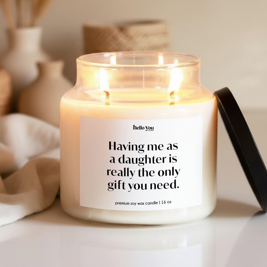 This Funny Candle Mother’s Day Candle is the ultimate truth bomb: “Having Me as a Daughter Is Really the Only Gift You Need.” Perfectly sweet, slightly sassy, and guaranteed to make Mom laugh, this candle makes an unforgettable Gift for Mom Birthday from Daughter, a thoughtful Mom Christmas Gift, or a heartfelt surprise any time you want to remind her you’re her greatest achievement.