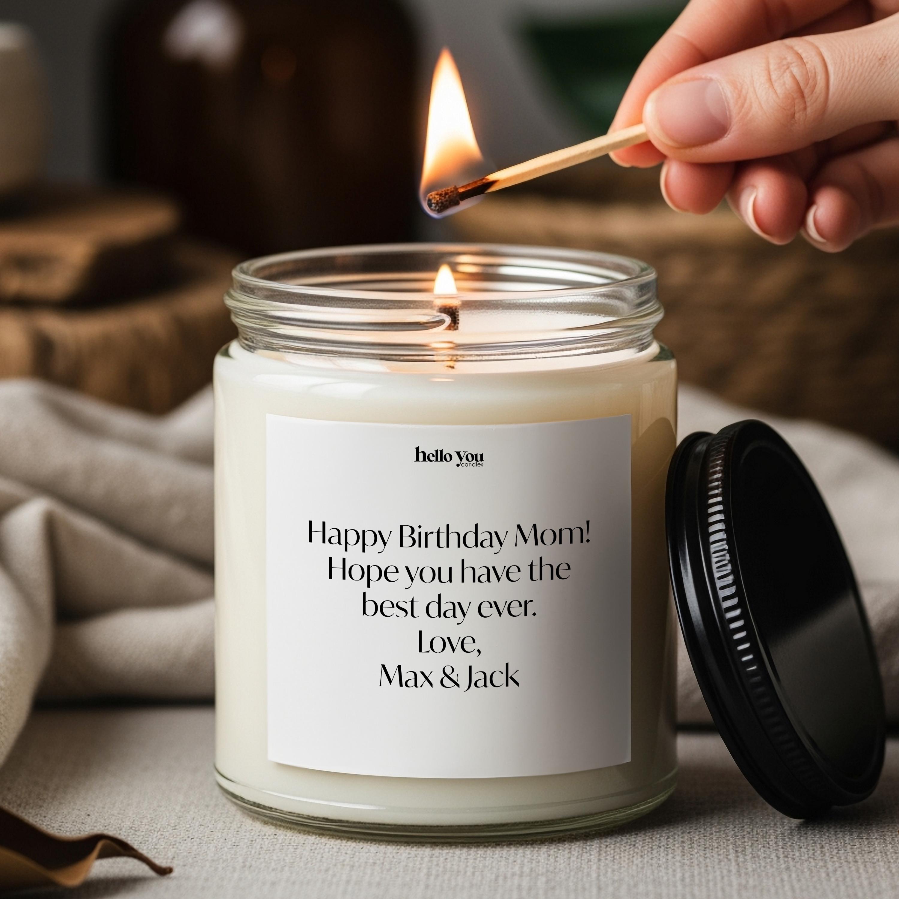 Hand-poured in small batches using 100% vegan soy wax, this Mom Candle blends clean ingredients with your signature personalized touch. Whether you’re shopping for a Mom Birthday Gift, hunting for Gifts for Mom, or looking for a sentimental Gift from Daughter, this candle checks every box. Moms love a cozy glow, but they’ll love this message even more.