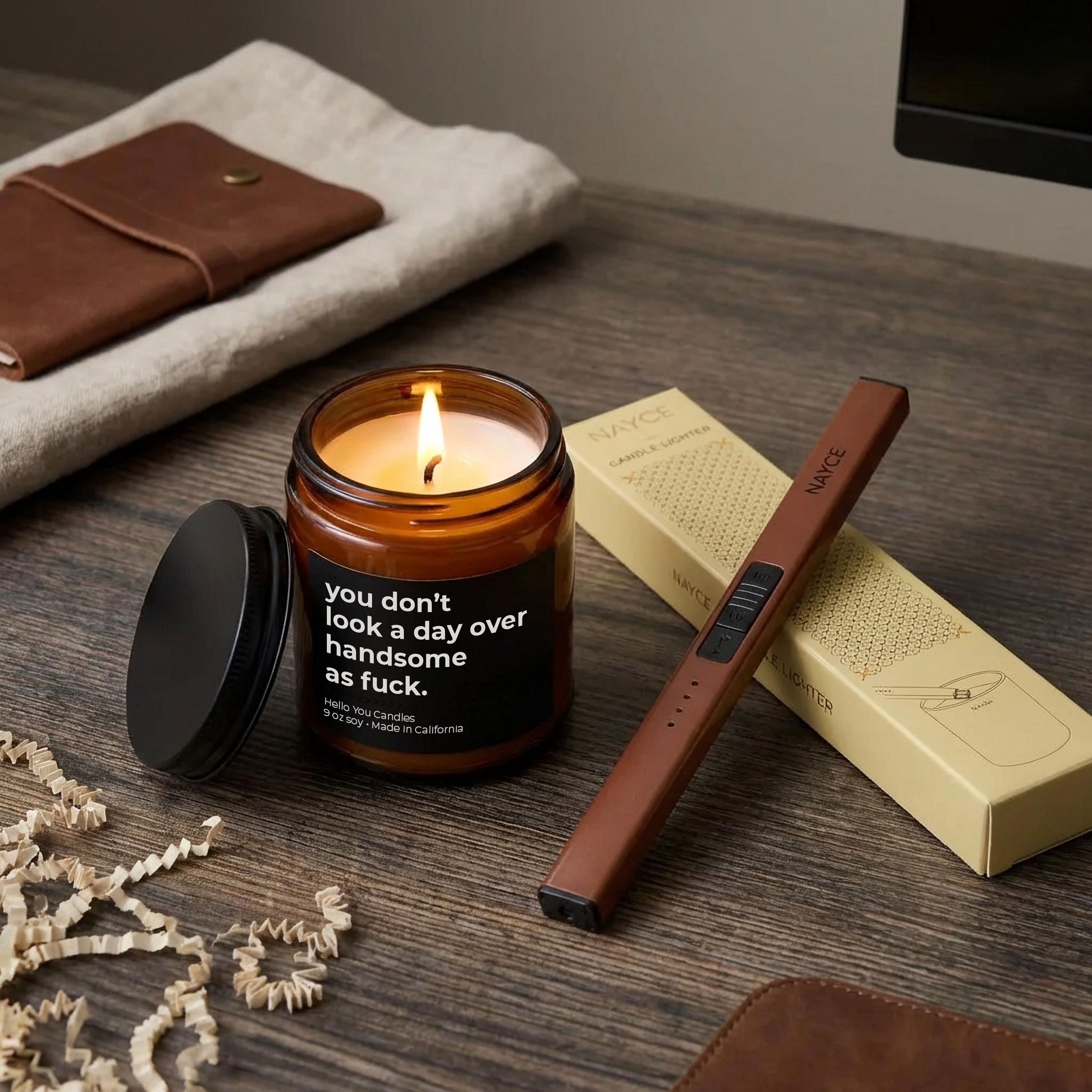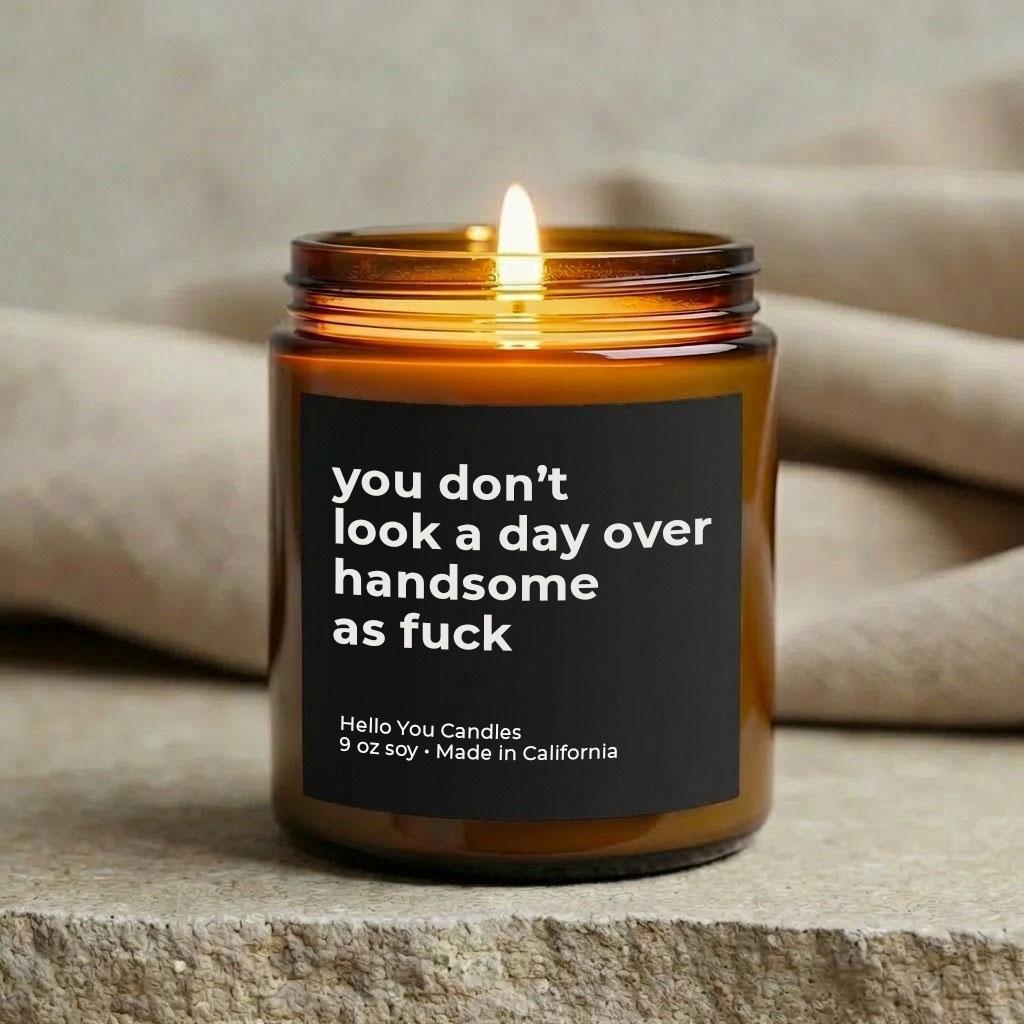 Our birthday gift for him candle reads "You don't look a day over handsome as fuck" and is the perfect birthday gifts for him, gift for husband, gift for your brother, boyfriend birthday gifts, candles for him or gift for son.