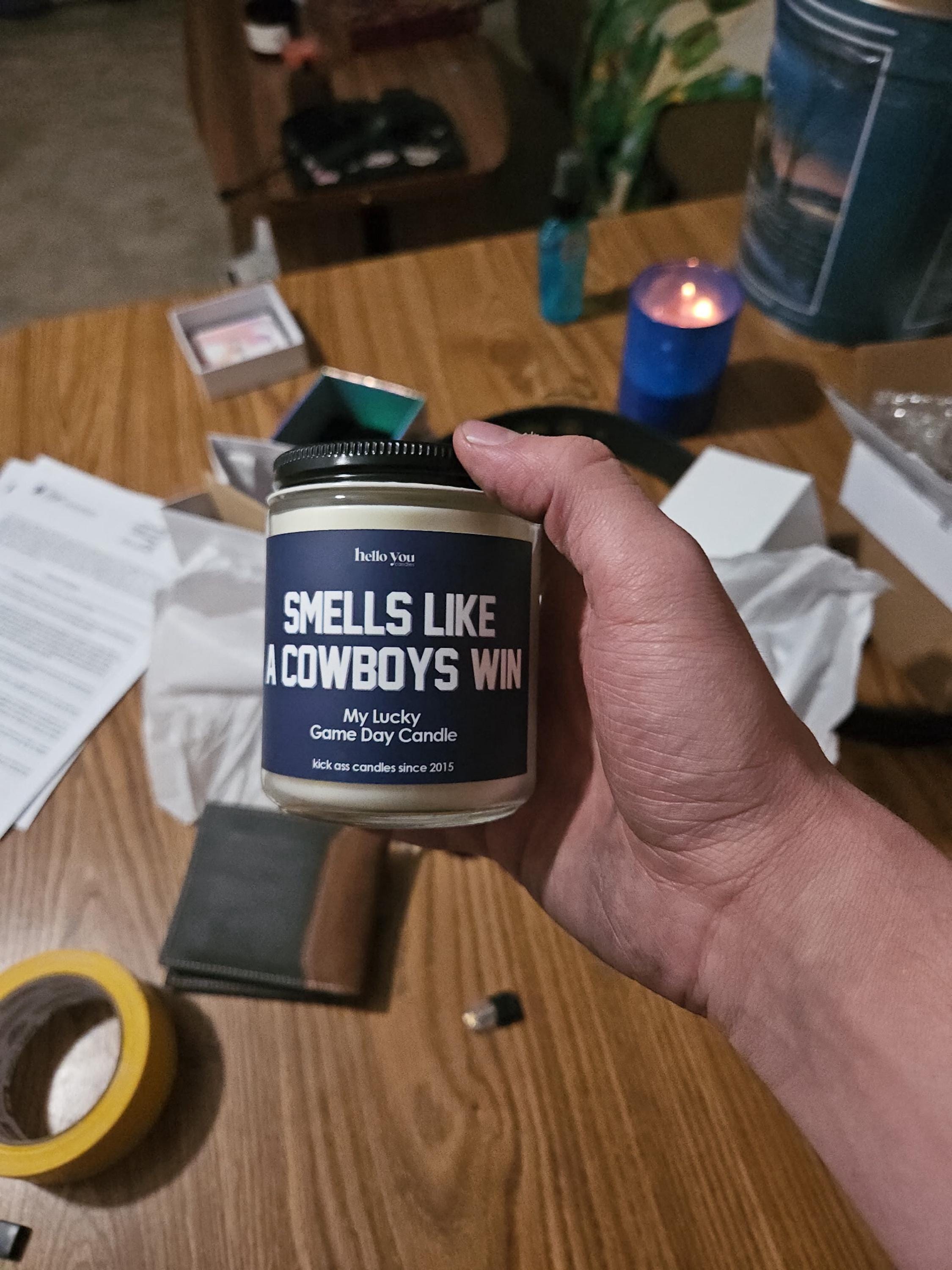 Our Las Vegas Raiders gift candle reads "Smells like a Raiders Win Lucky Game Day Candle" and is the perfect birthday gifts for him, Father's Day gift, gift for dad, gift for husband, boyfriend gift or best friend gift.
