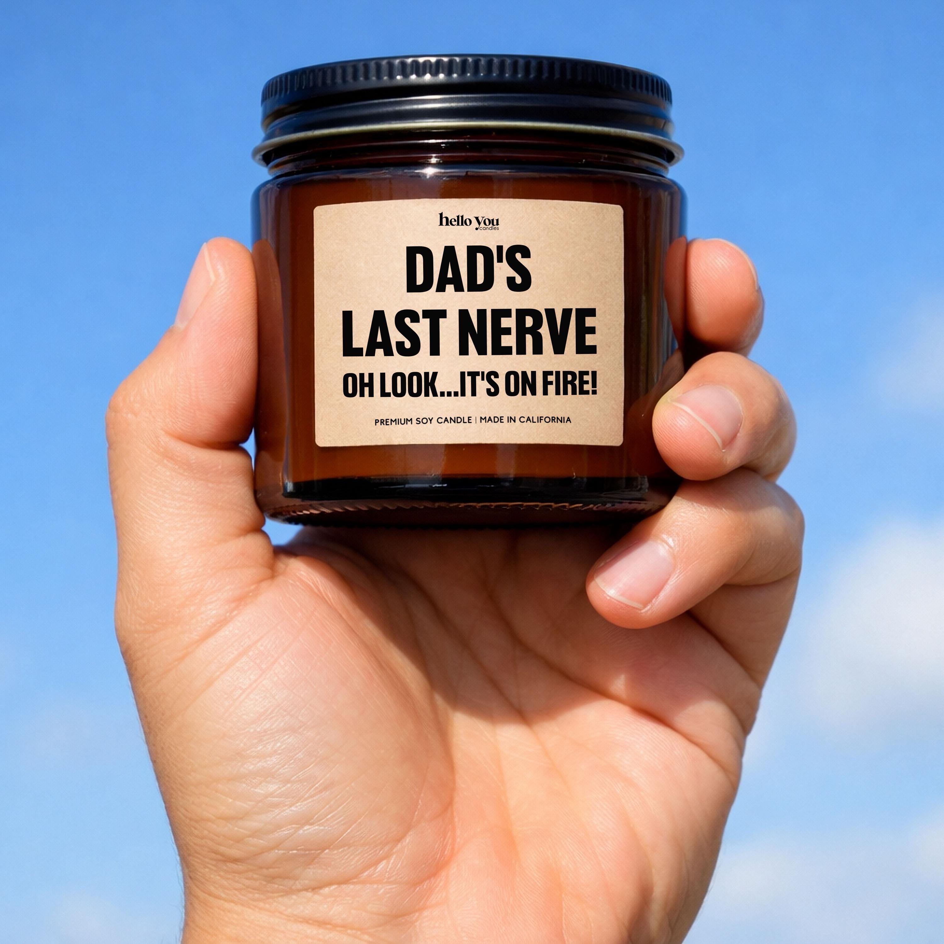 Looking for a Father’s Day gift that actually makes him laugh? This funny Father’s Day candle featuring the phrase “Dad’s Last Nerve… Oh Look, It’s On Fire” is the perfect mix of sarcasm and love. Designed for dads who appreciate dry humor, this candle makes a memorable gag gift that’s both practical and hilarious.