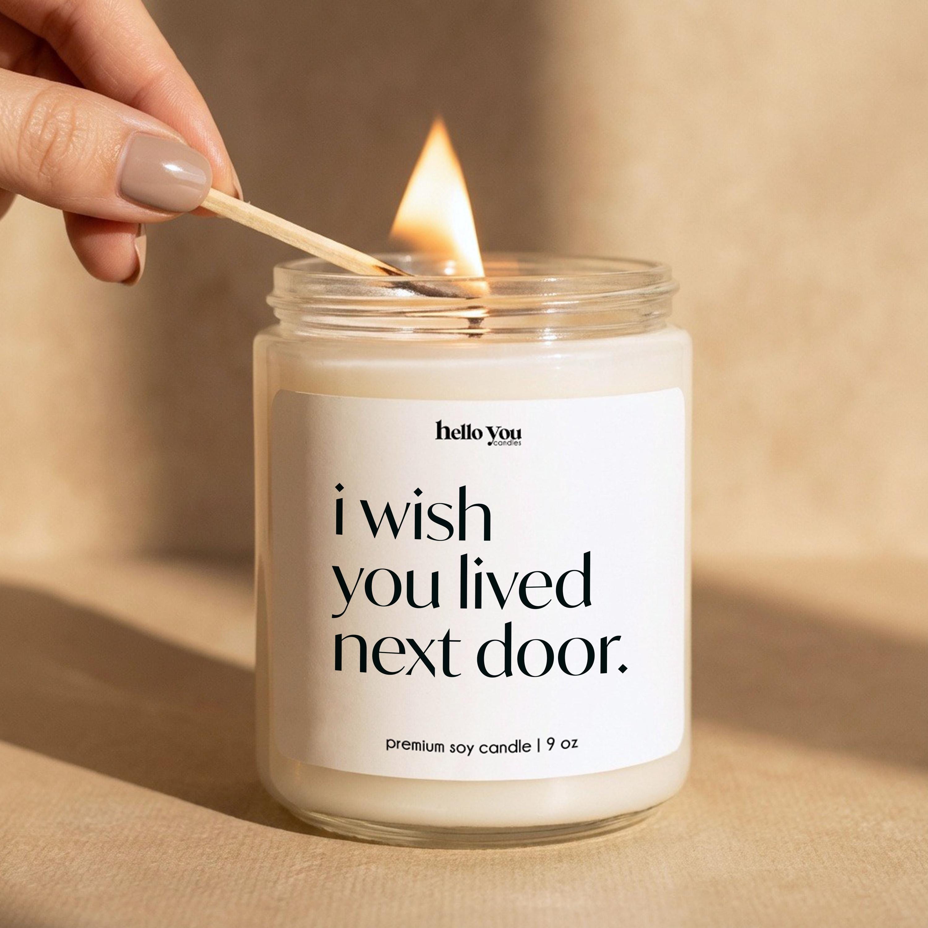 Our “I Wish You Lived Next Door” candle is the perfect best friend gift, long distance friendship gift, or friend moving away gift for birthdays, Galentine’s, college moves, new jobs, or any “ugh I miss you” moment. Clean, minimal, and gift-ready—so it feels elevated, not cheesy.