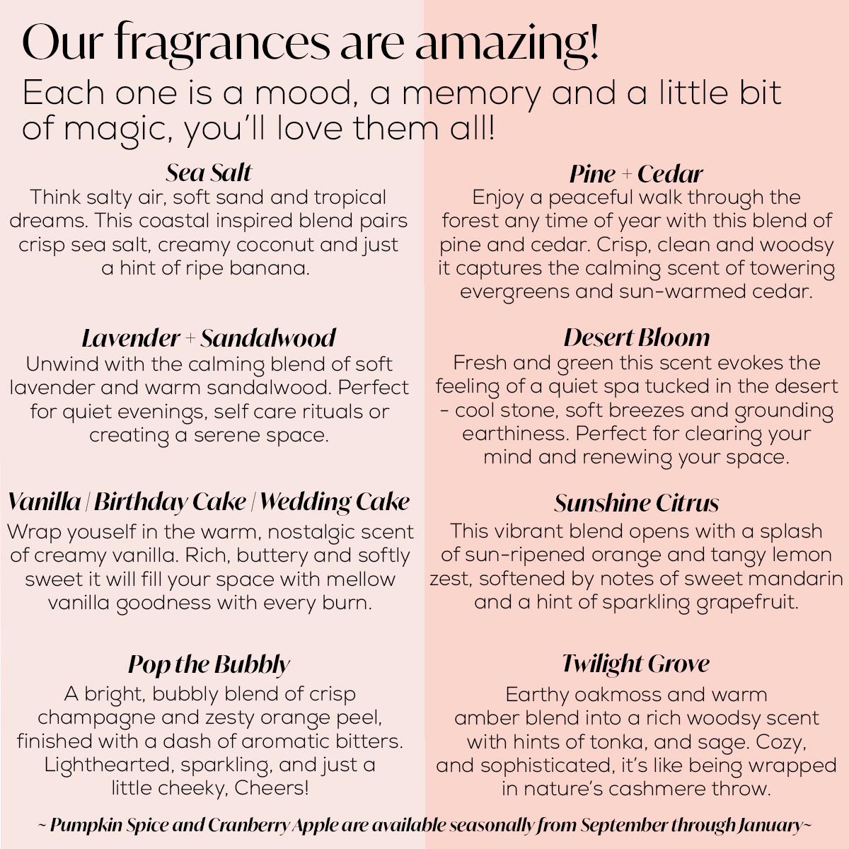 CANDLE SCENT: Please choose your scent choice from the drop down. If you would like more information on our current scent options please click the link below to visit the "Current Candle Scent" section of our shop: