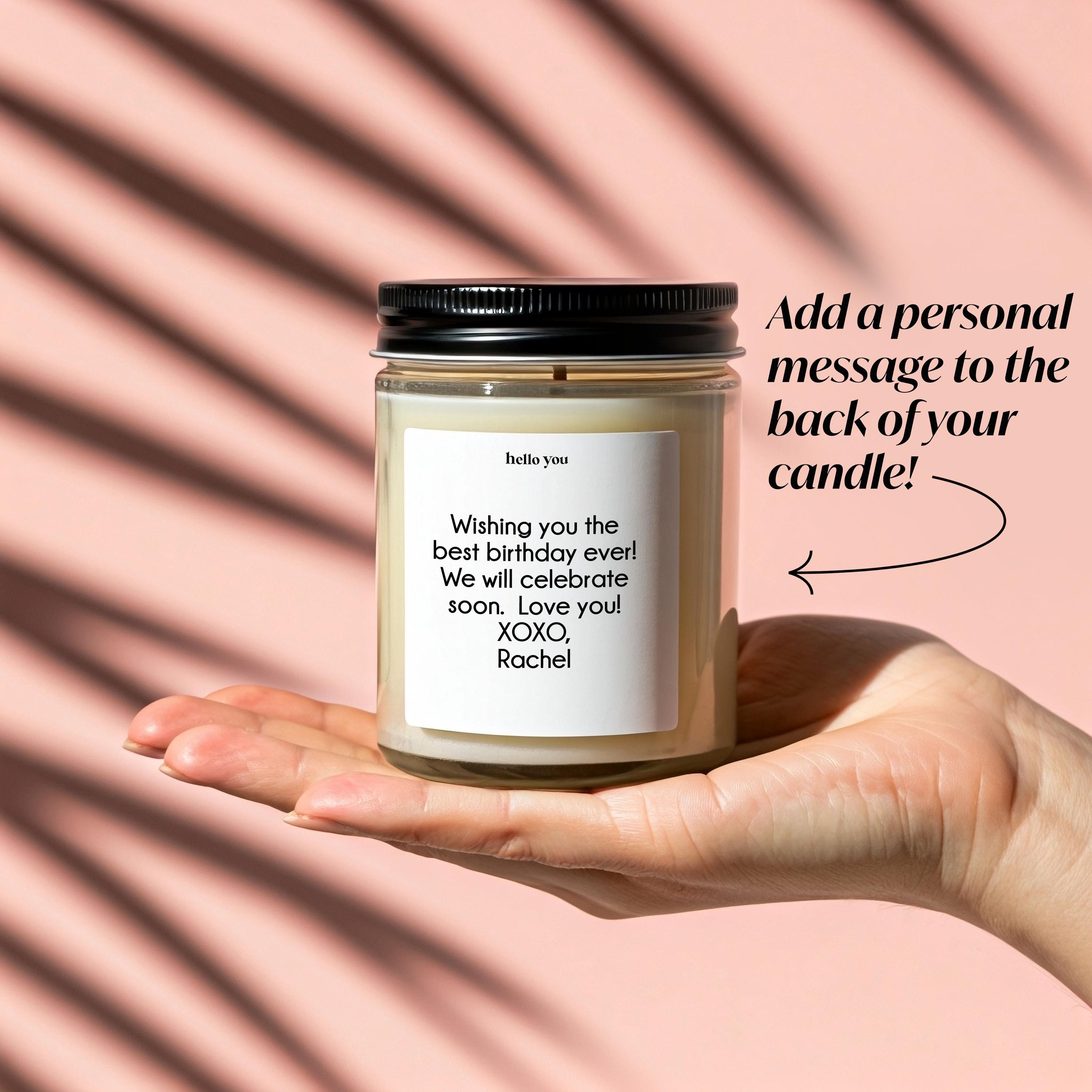 Make it personal, add a custom message to the back of your candle (no additional charge :)