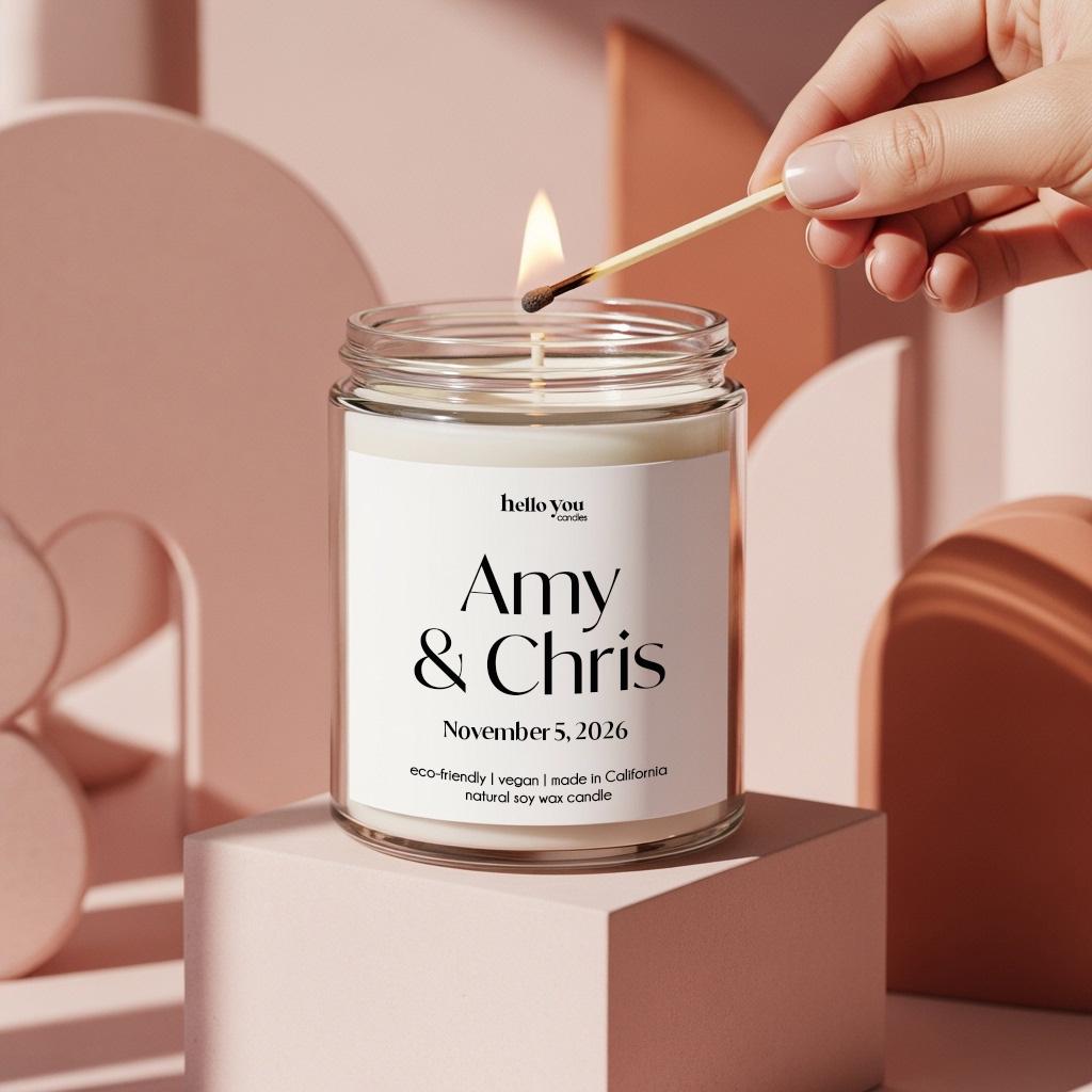 Our Engagement gift candles is personalized with the Initials and date of wedding or engagement and is the perfect Personalized Engagement Gift, Personalized Wedding Gift, the Perfect Match Candle and Match Gift Set, Couple Engagement or Gift for Couple Engagement.