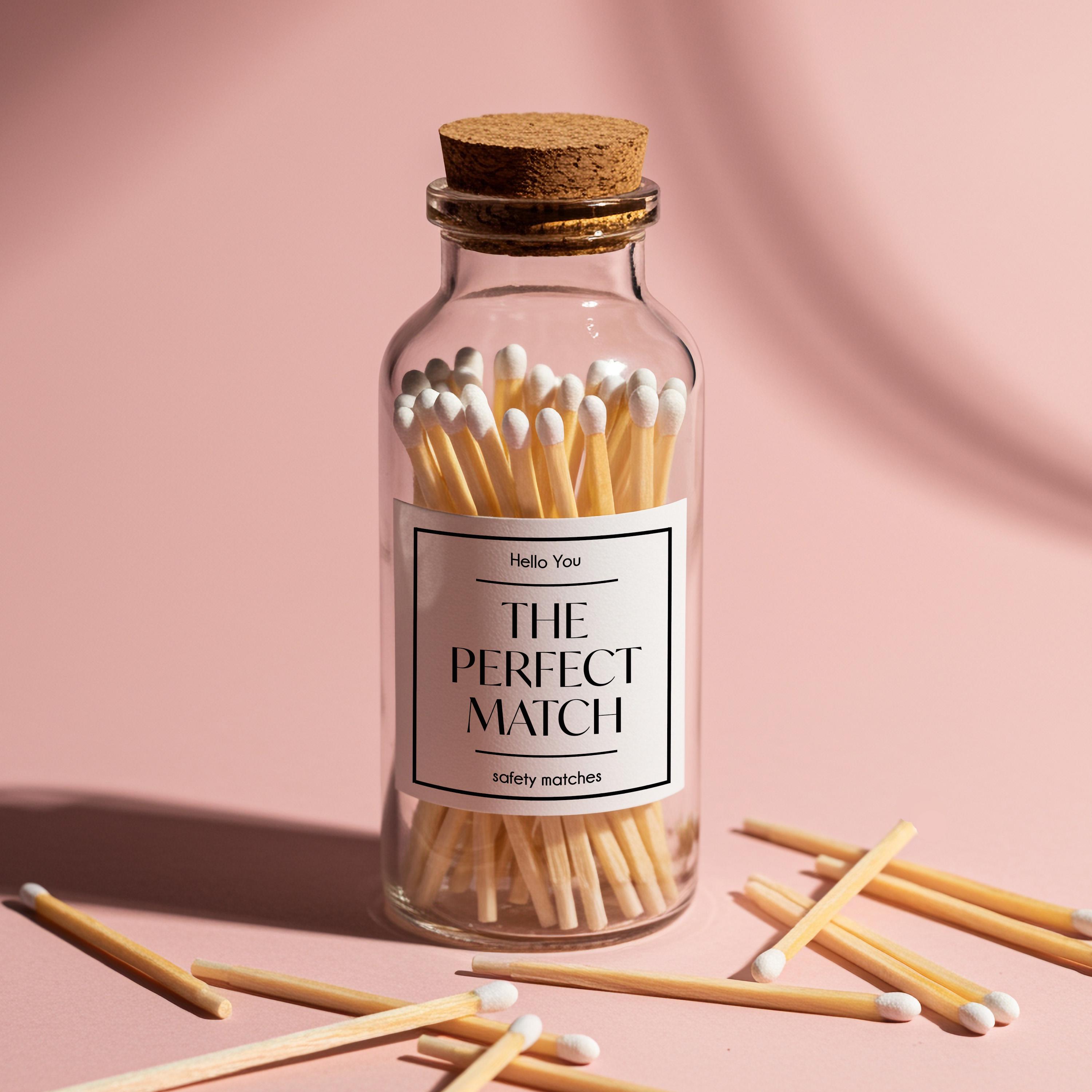 1 - 9 oz candle and bottle of 3-inch safety matches in design shown - approximately 40 matches.