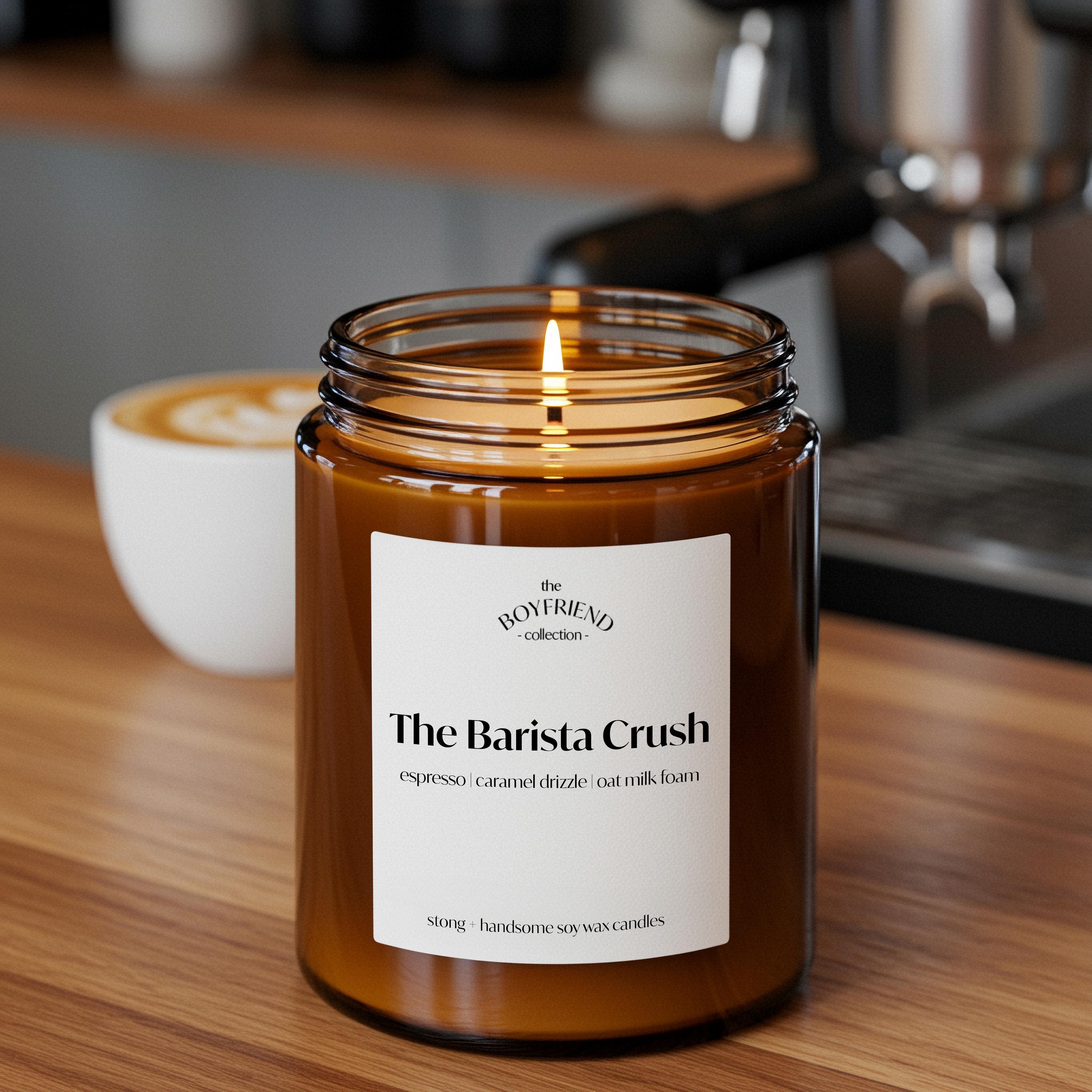 The Barista Crush boyfriend candle vibe: Knows your order by heart, has tattoos, flirts with latte art and is the perfect boyfriend, oops I mean gift for best friend, boyfriend gift, funny friend birthday gift, funny coworker gift, friendship gift or gift for your single sister.