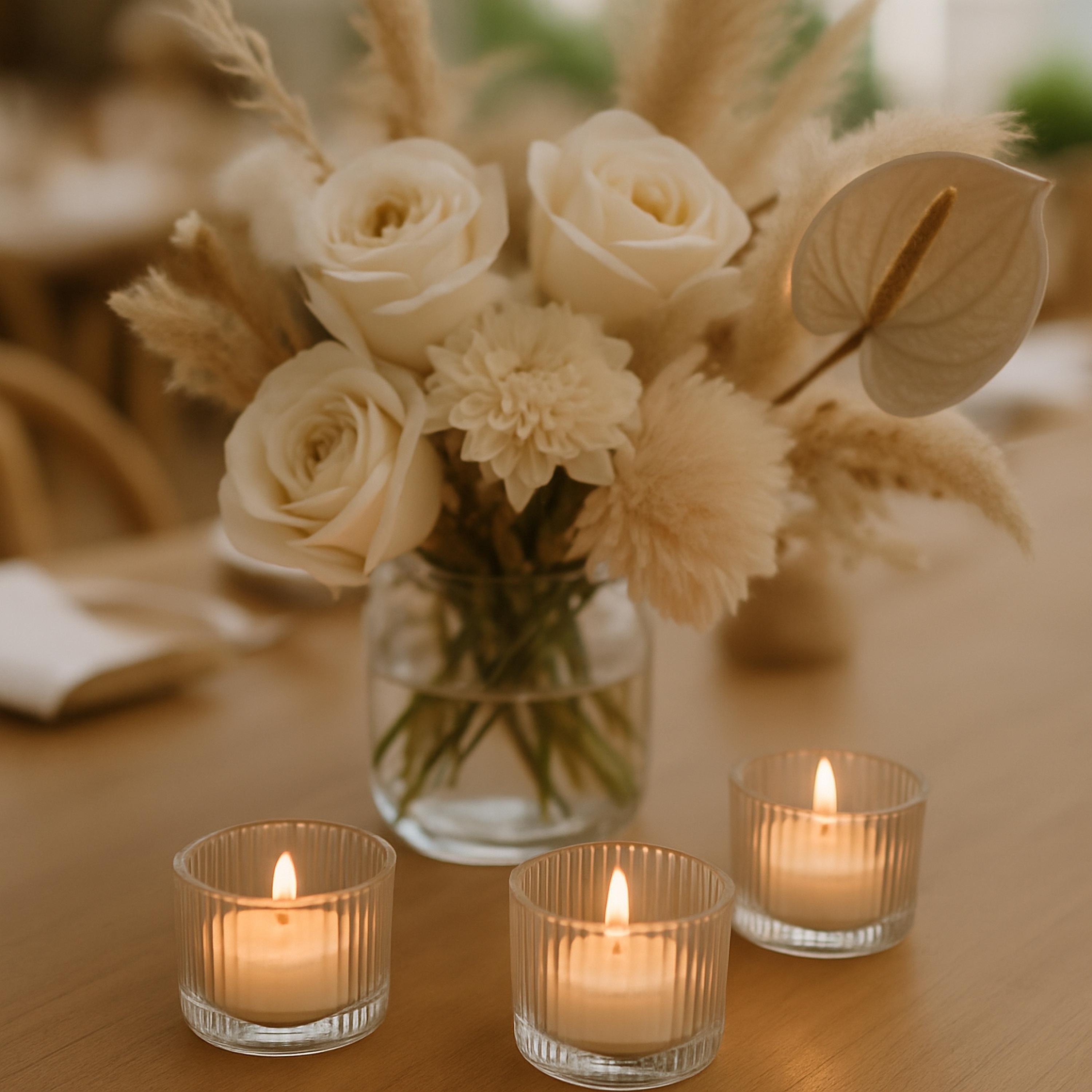 Our Soy Tealight Candles are perfect for Wedding table decorations, wedding table candles and special event table candles. They are unscented, toxin and paraffin free.