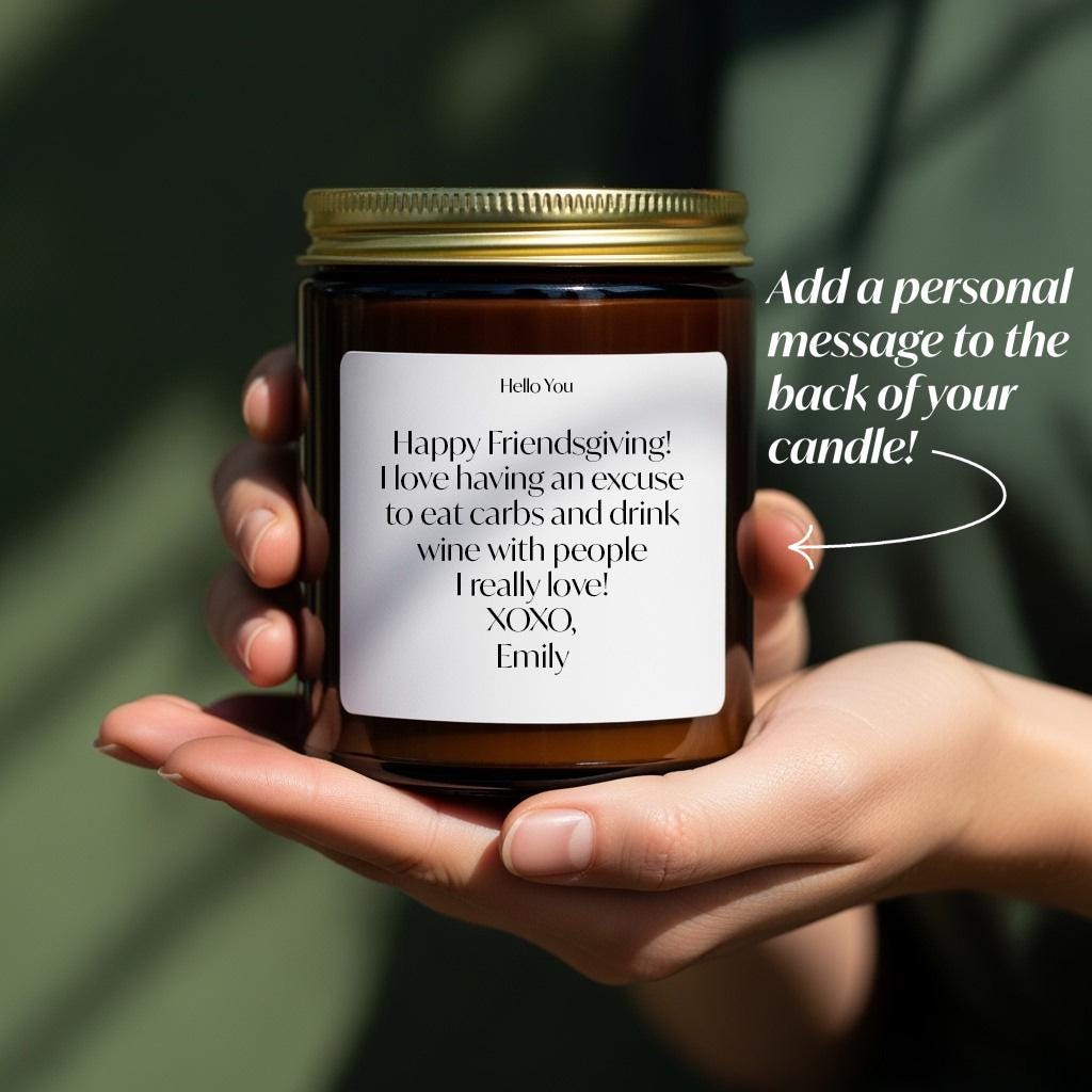 Make it personal, add a custom message or your logo to the back of your candle (no additional charge :)