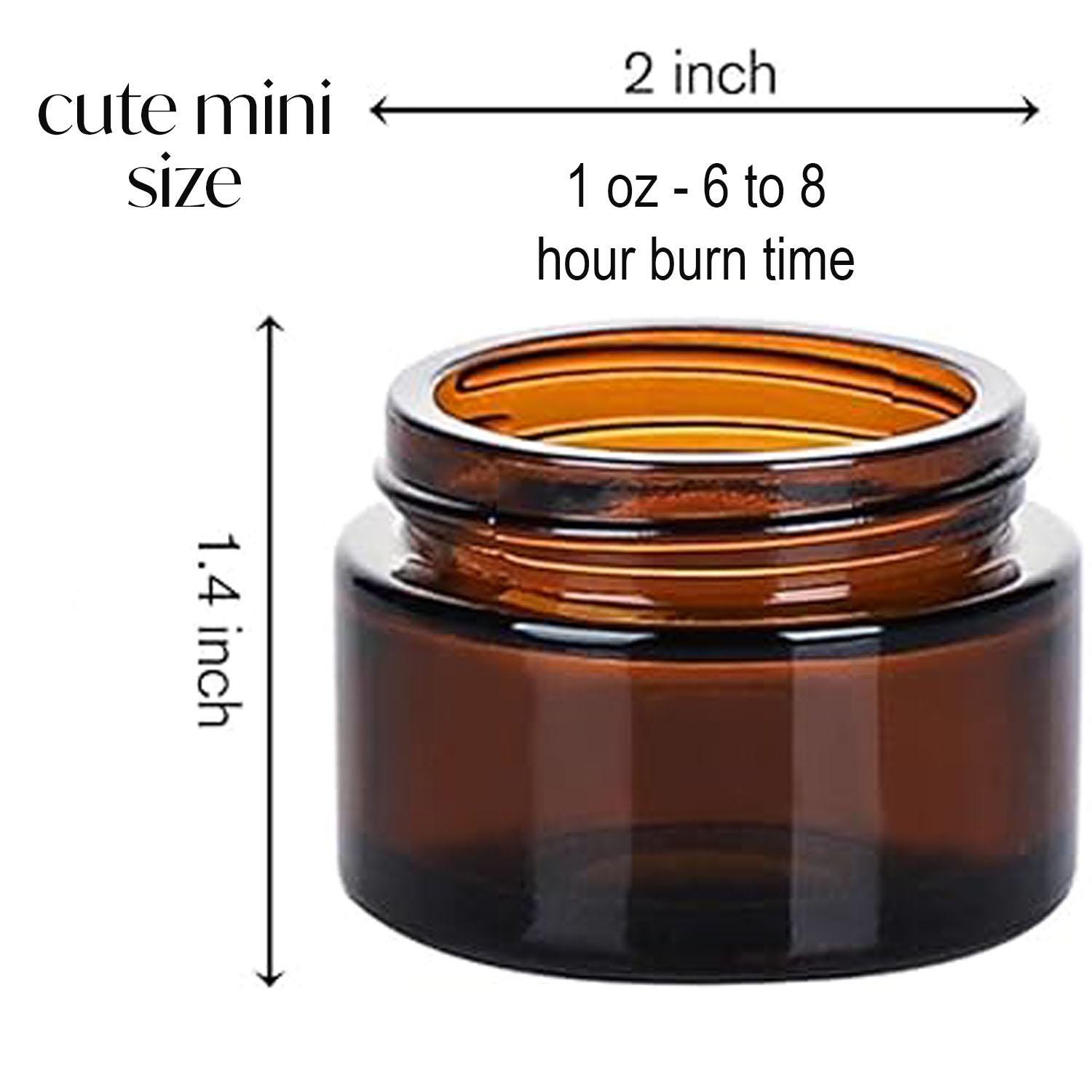 Our candles measure approximately 2.75 inches in diameter and 3.5 inches tall. They are filled with 9 oz of soy wax and have an approximate burn time of 50 hours.