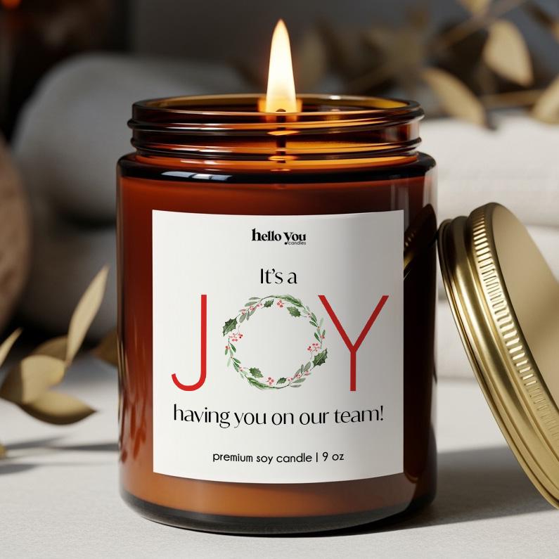 Hi, welcome to Hello You Candles! Our Christmas team gift candle reads "Smells like the best team ever." and is the perfect gift for Best Team Candle, Holiday Corporate Gift, Team Appreciation, Coworker Gift or Employee Thank You Gift.