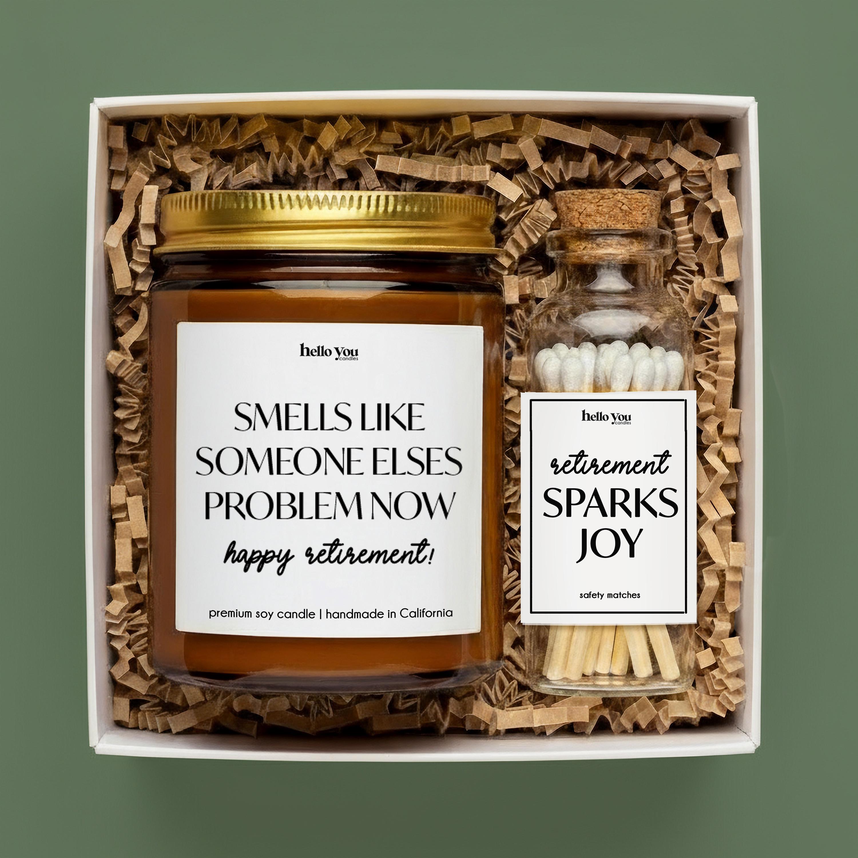 Celebrate the sweet freedom of retirement with a laugh! Our retirement gift candle reads “Smells Like It’s Someone Else’s Problem Now” and is the perfect funny police retirement, teacher retirement or nurse retirement gift for coworkers, bosses, friends, or family members who are finally clocking out for good. Whether it’s a farewell party, office send-off, or retirement celebration, this candle says it all — with humor and heart.