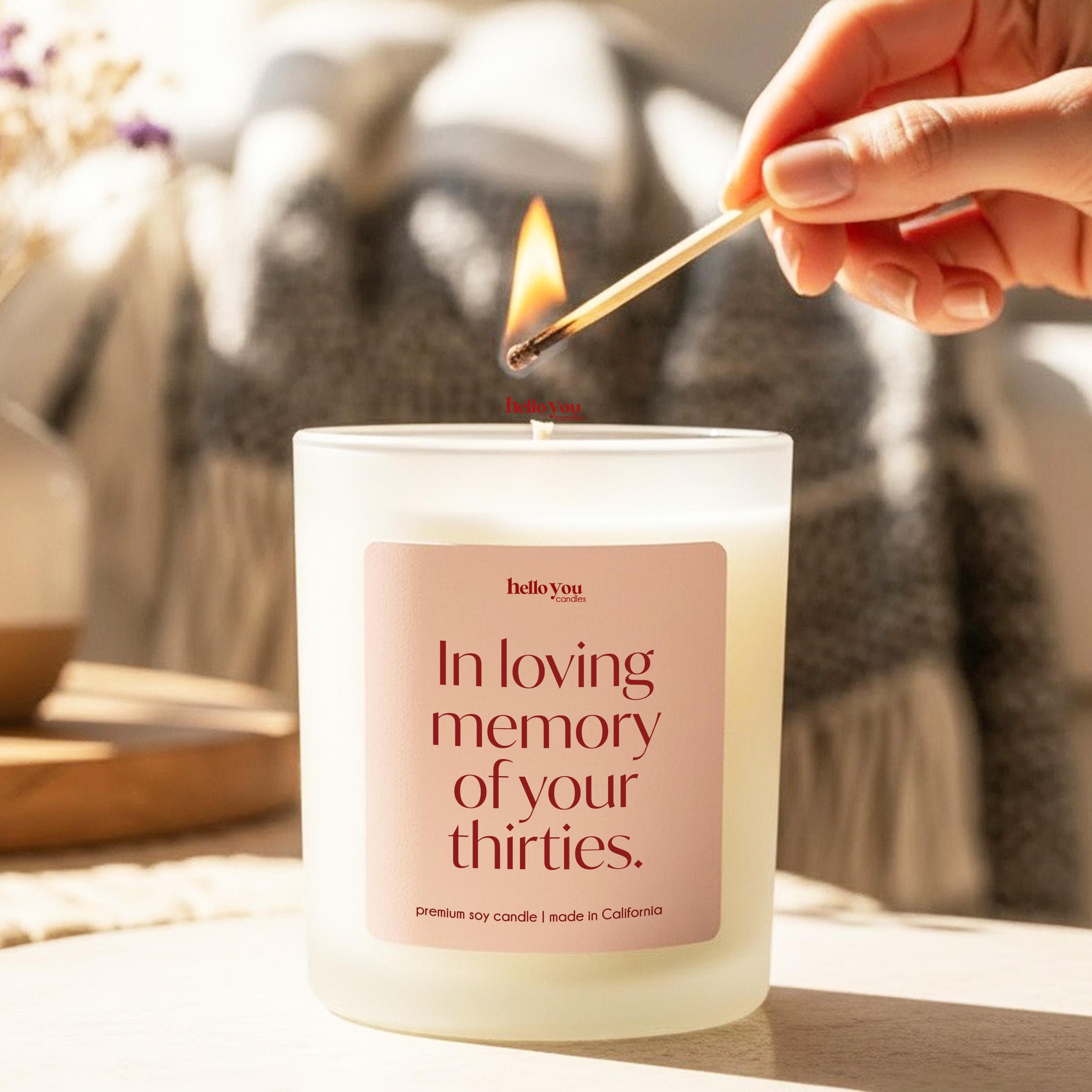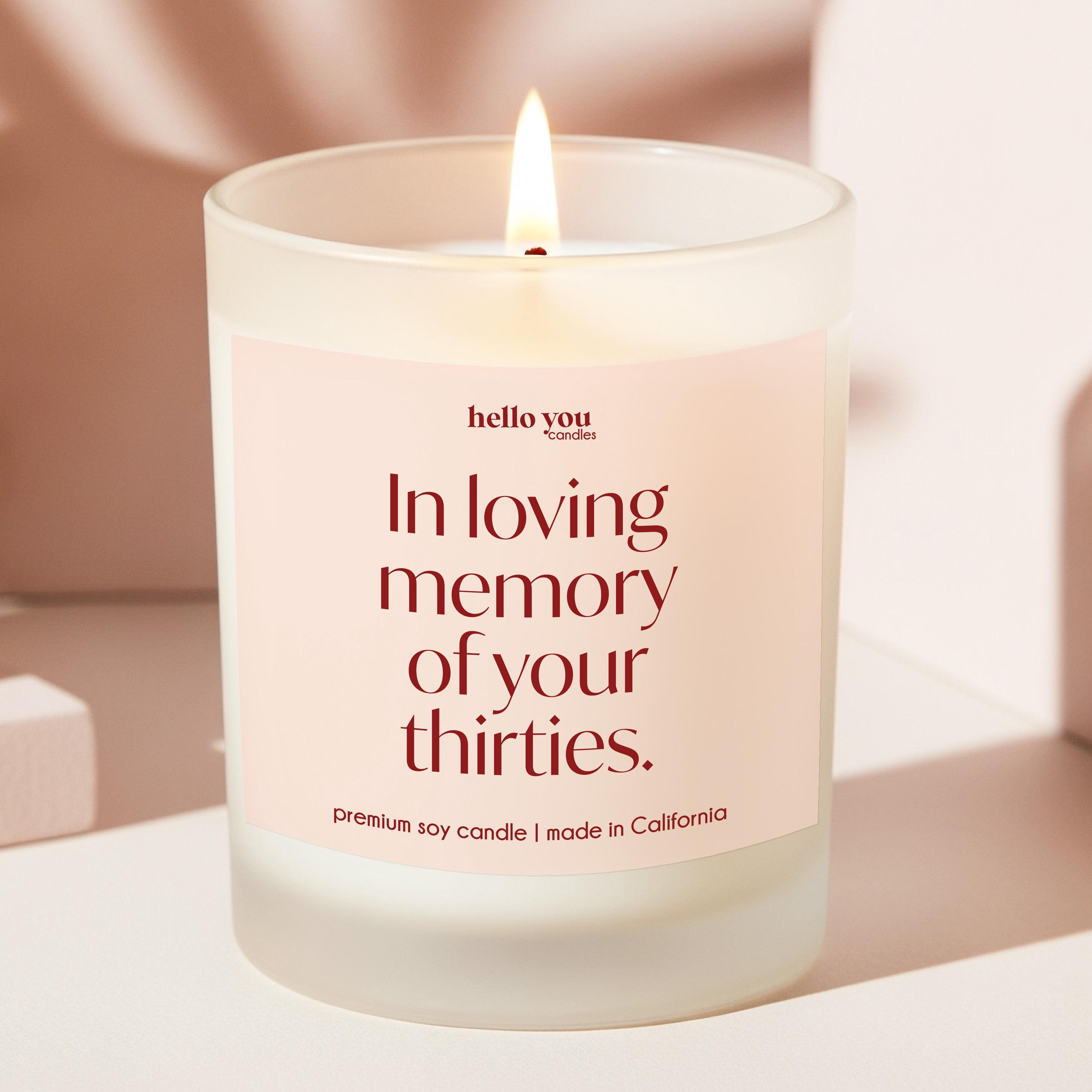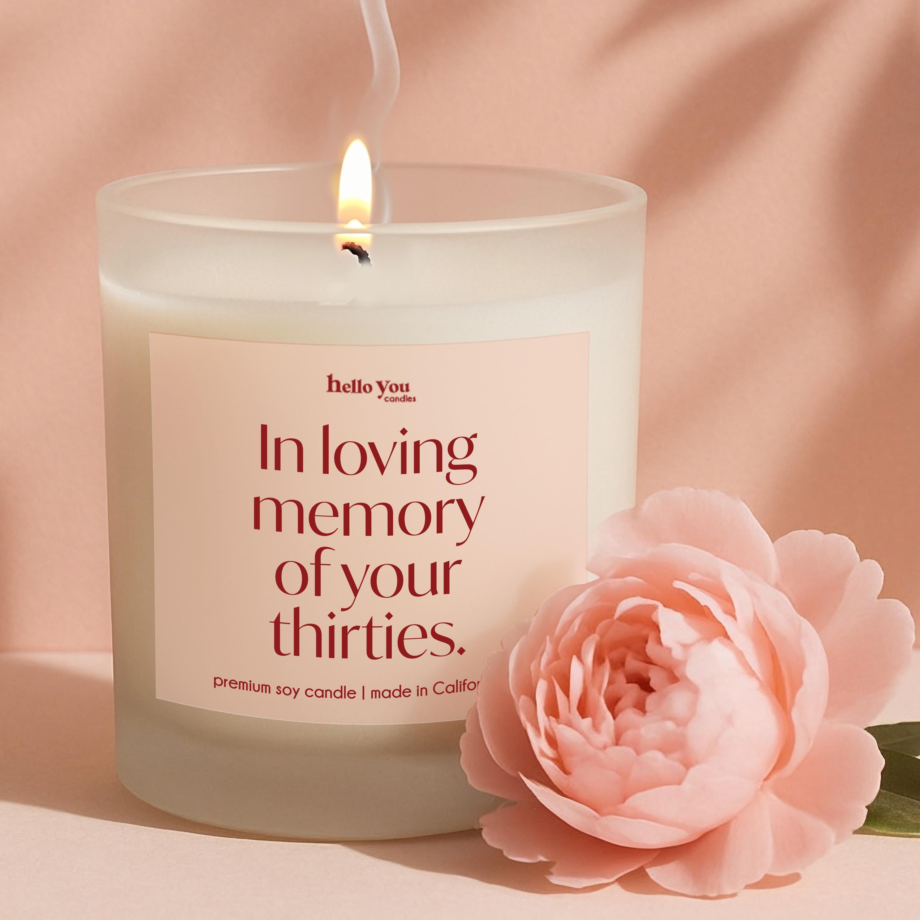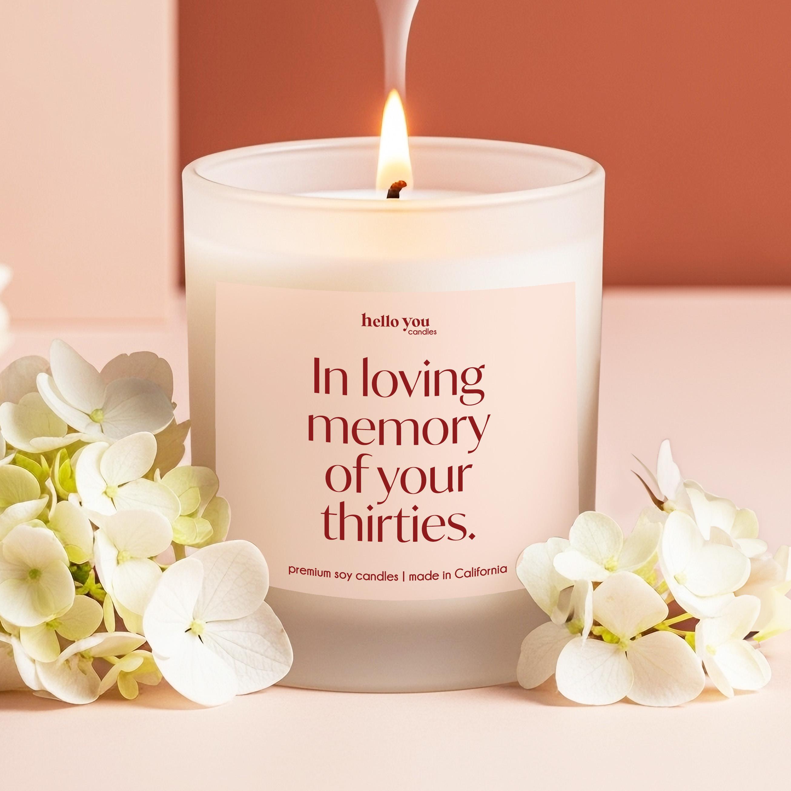 Our Funny 40th Birthday Gift Candle reads "In loving memory of your thirties." and are the perfect gifts for Best Friend 40th Birthday Gifts Funny Birthday Gift Candle Milestone Birthday Gifts for 40th Birthday Card Alternative
