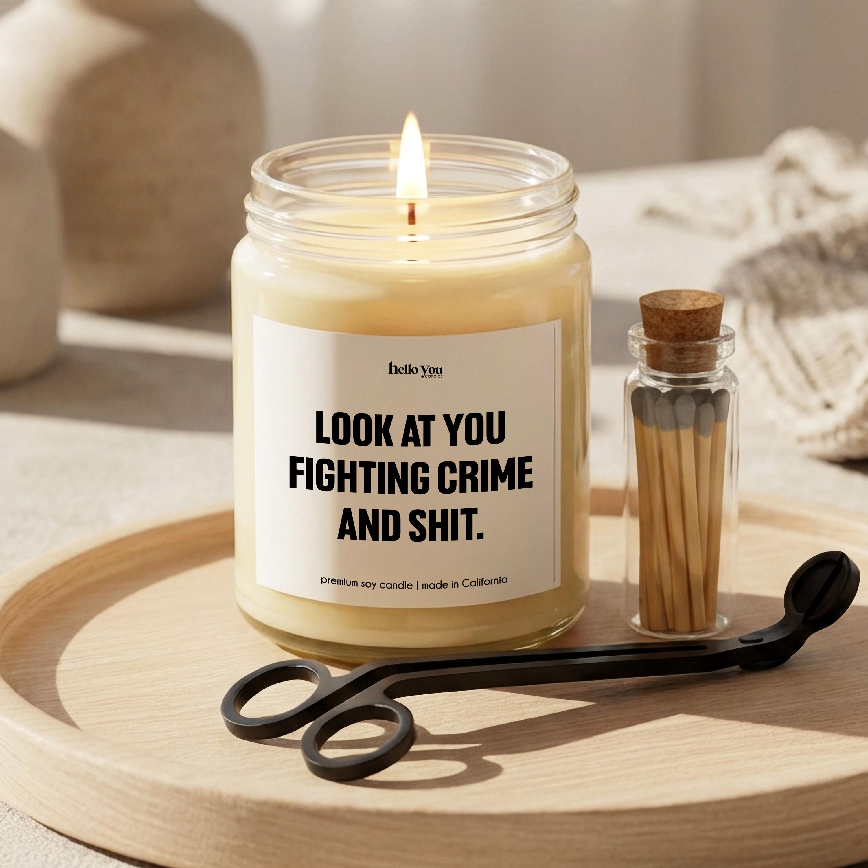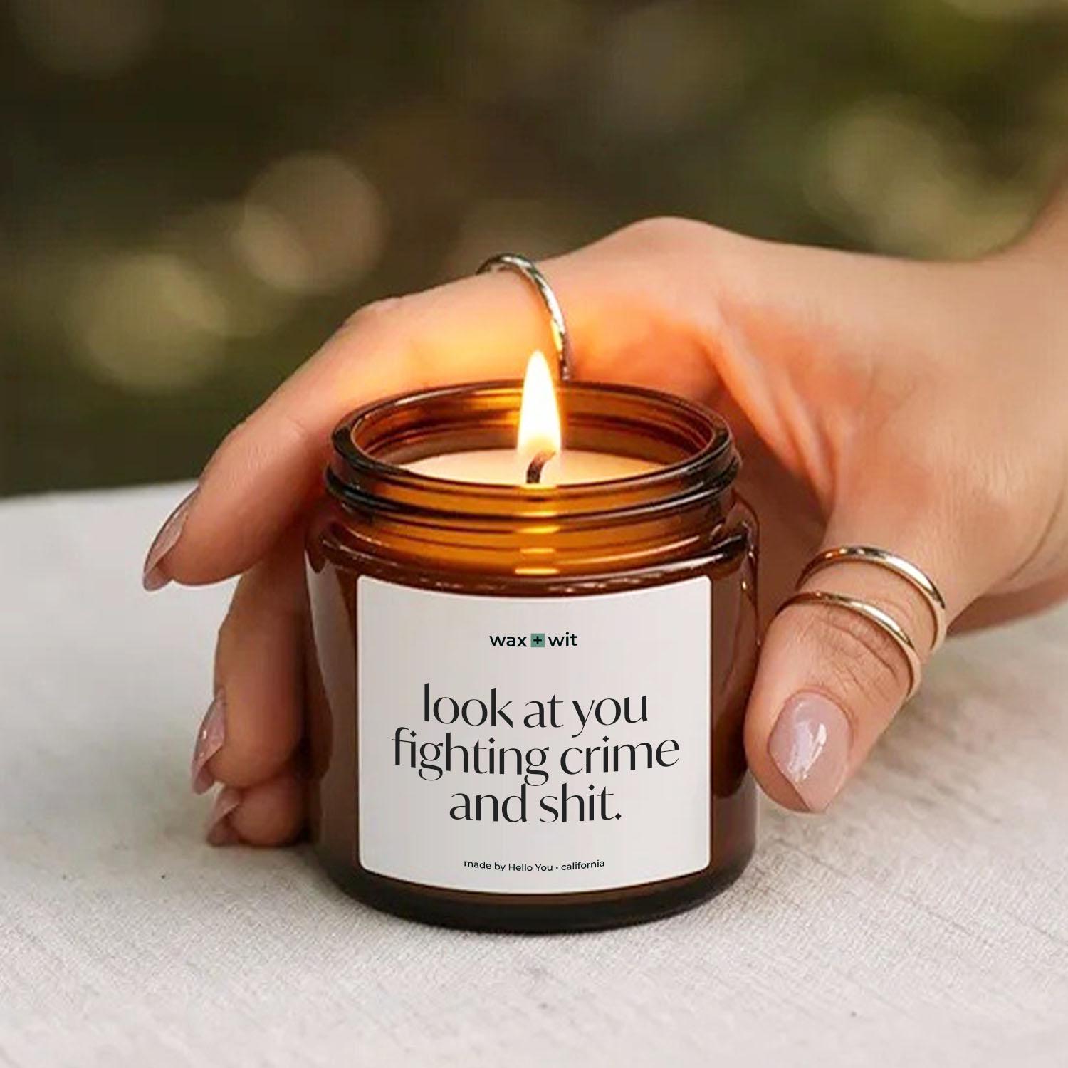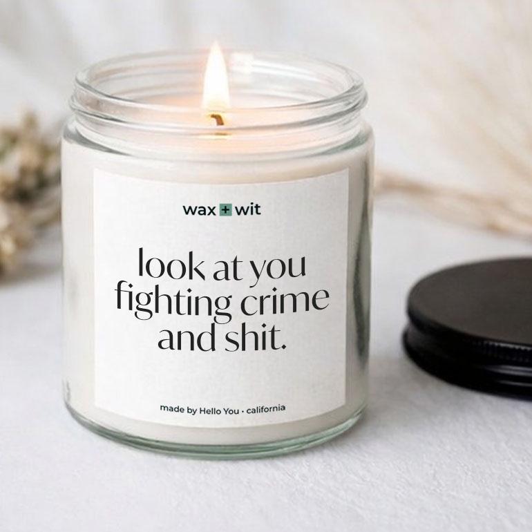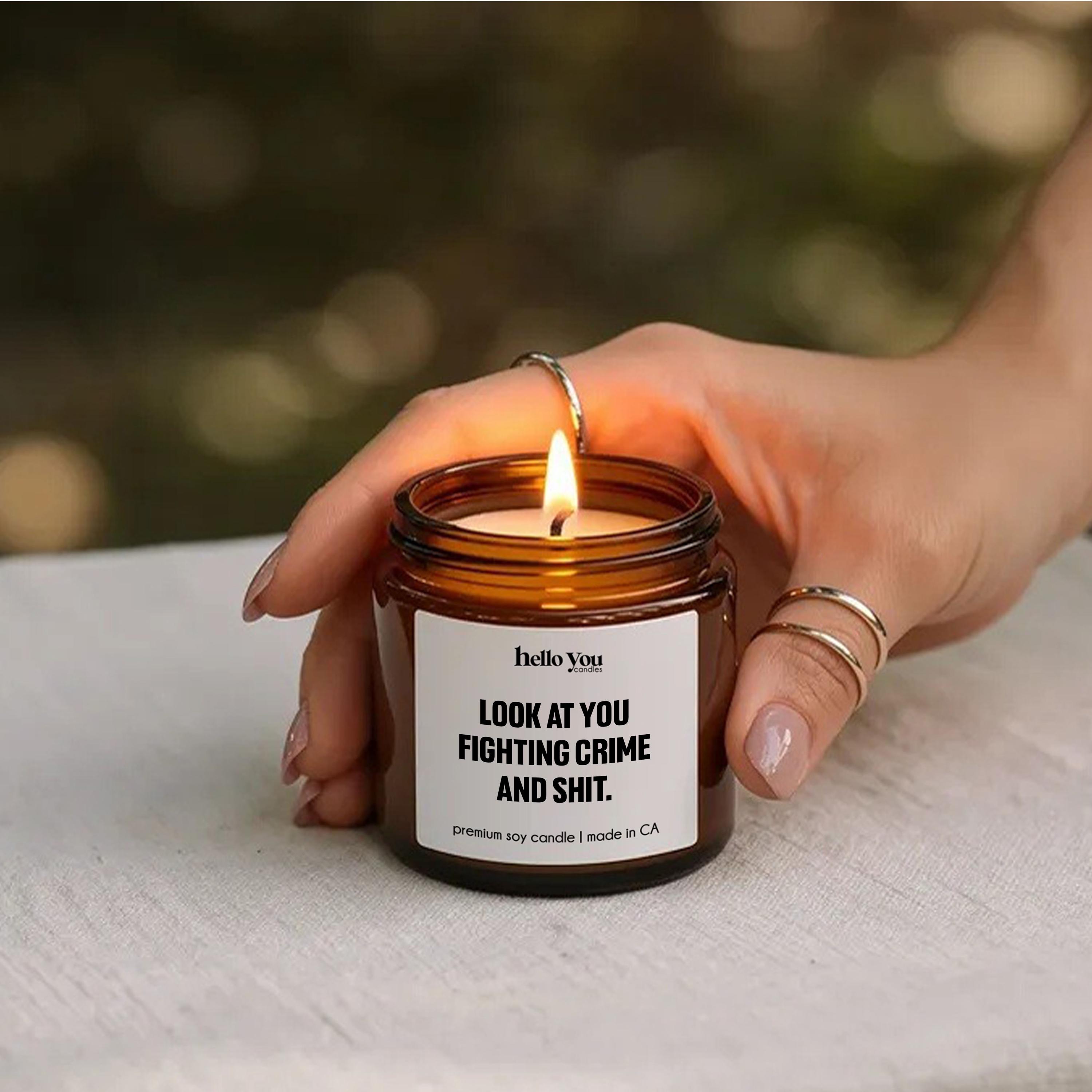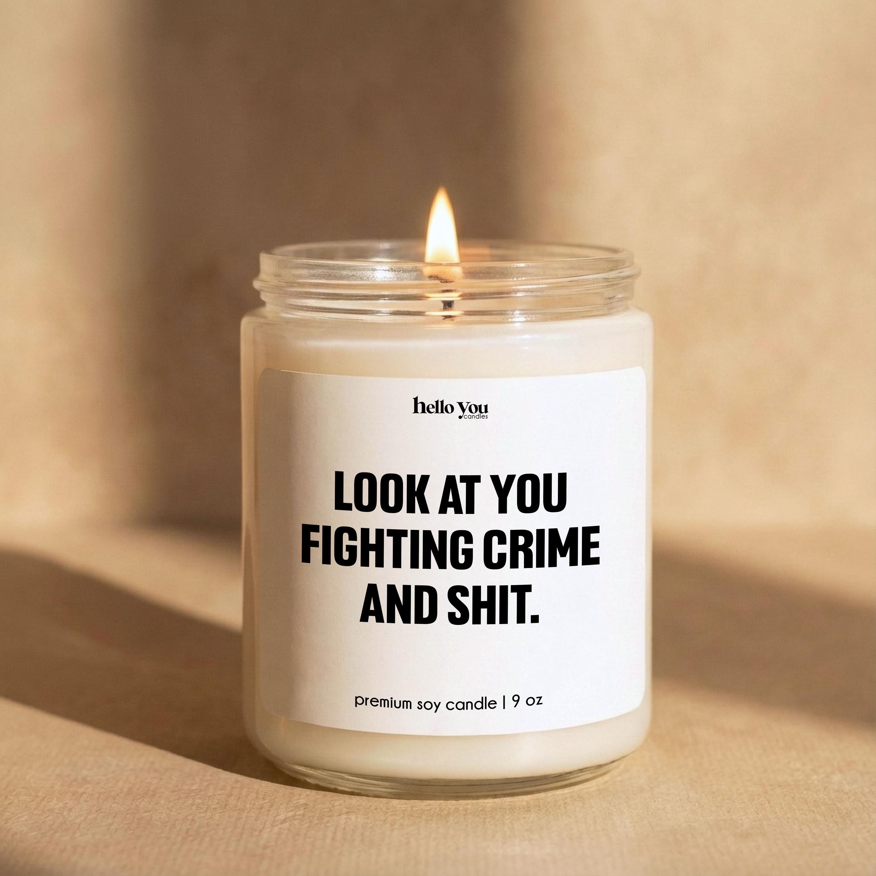 A hilarious, confidence-boosting scented soy candle made for the real-life heroes (and the people who love them). This is the perfect funny police officer gift, detective candle, or law enforcement gift for birthdays, promotions, academy graduation, partner appreciation, or a “you’re doing amazing” moment after a long shift.