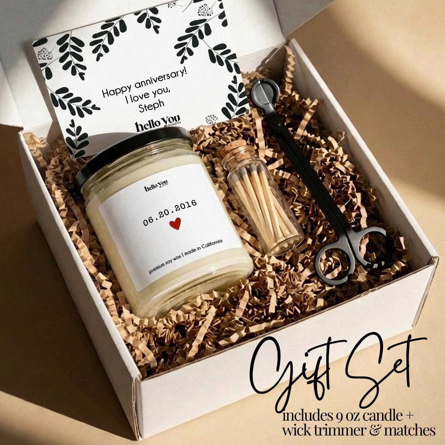 Celebrate your 1st year of love with our personalized 1 year anniversary gift candle made with your custom date. This custom 1st anniversary gift is a sweet, meaningful keepsake for your spouse—or a thoughtful gift for a favorite couple.