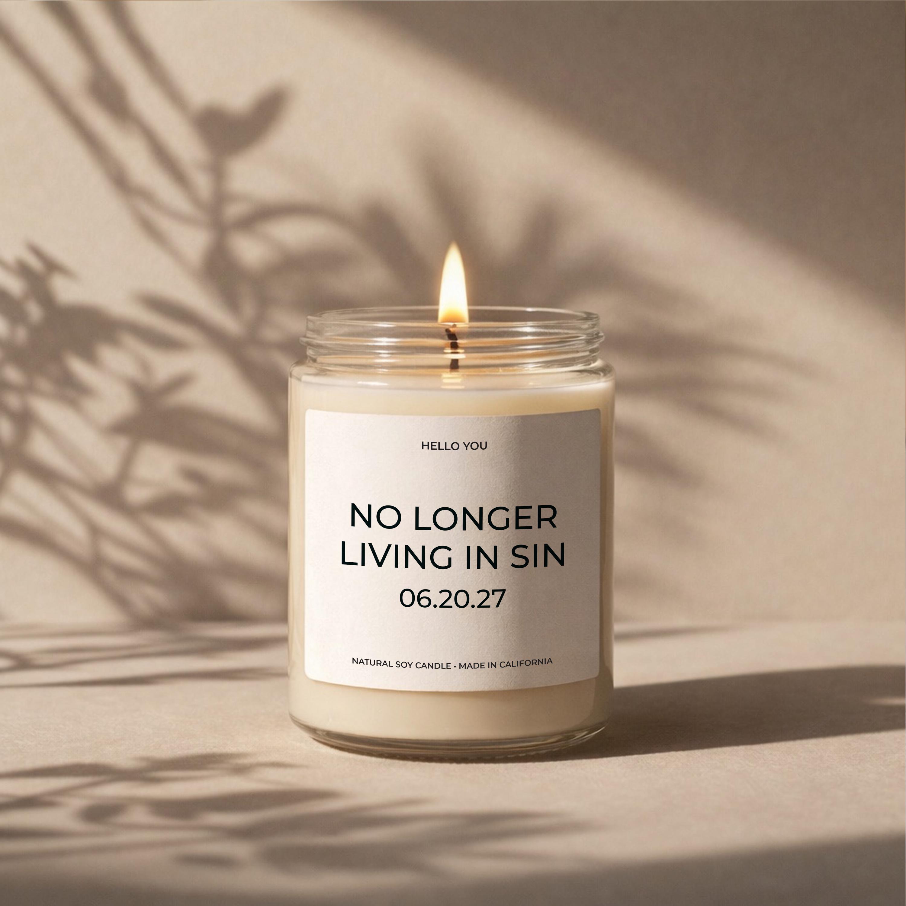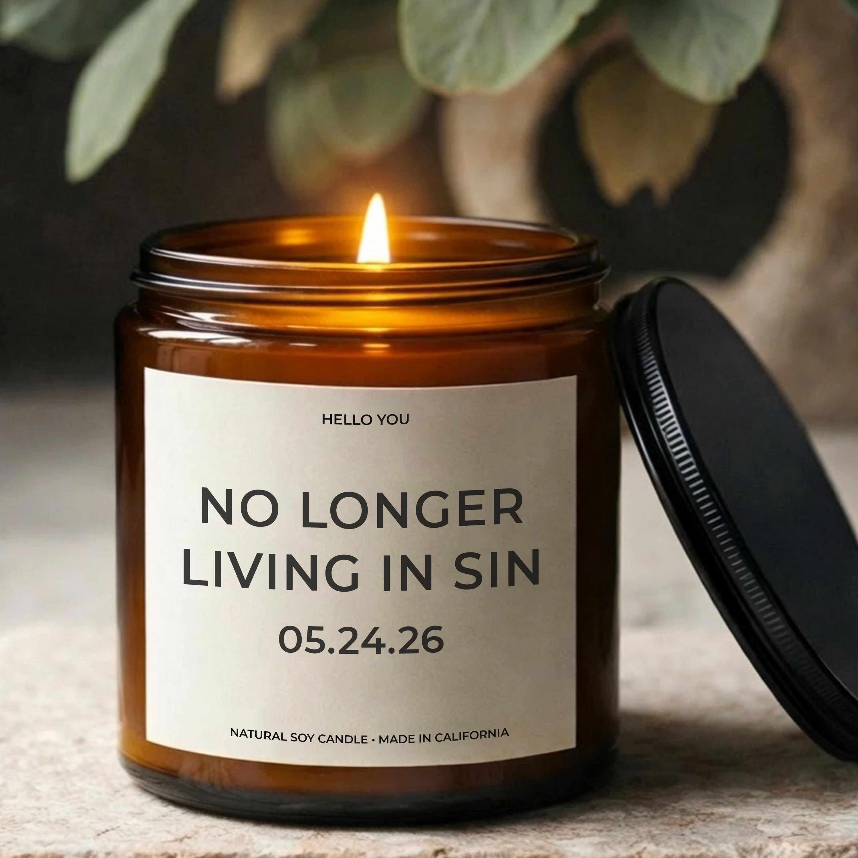 Celebrate the “we made it official” moment with our No Longer Living in Sin candle—personalized with your custom wedding date for a keepsake they’ll actually laugh at (and use). This funny wedding gift for a couple is perfect for an engagement gift, bridal shower, newlywed gift, or anniversary candle. Made as a clean-burning soy candle and customized with the date you enter at checkout, it’s a memorable personalized wedding gift for the bride, groom, or your favorite couple.