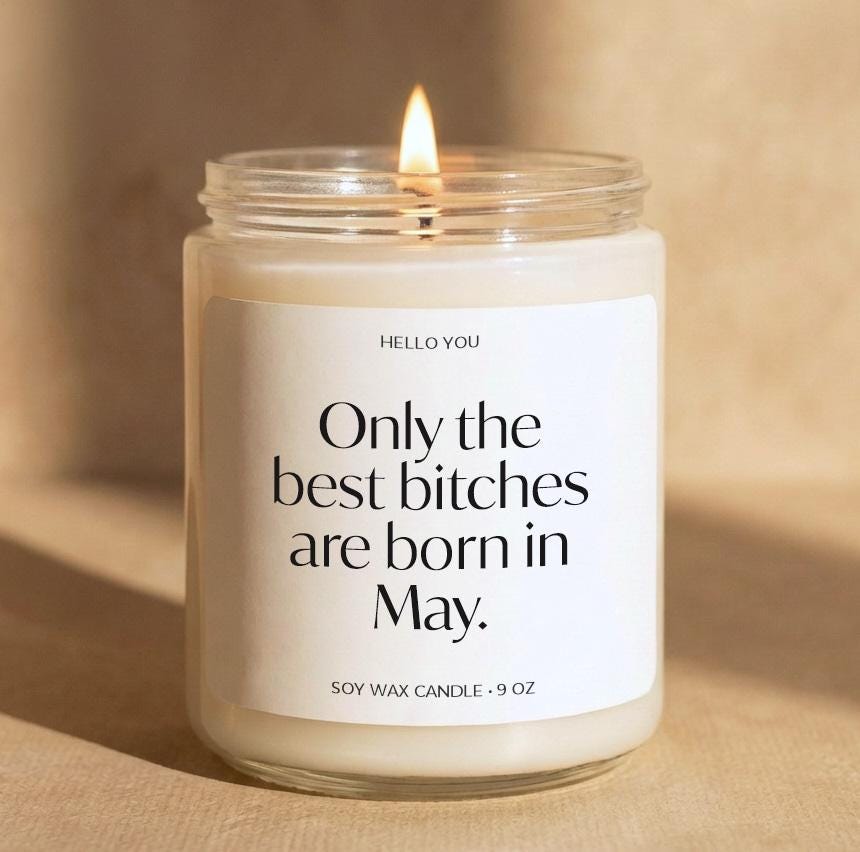 Celebrate her May birthday with a candle that says it exactly how it is — Only the Best Bitches Are Born in May. Funny, bold, and giftable, this scented soy candle makes the perfect birthday gift for your best friend, sister, coworker, or favorite May-born queen.