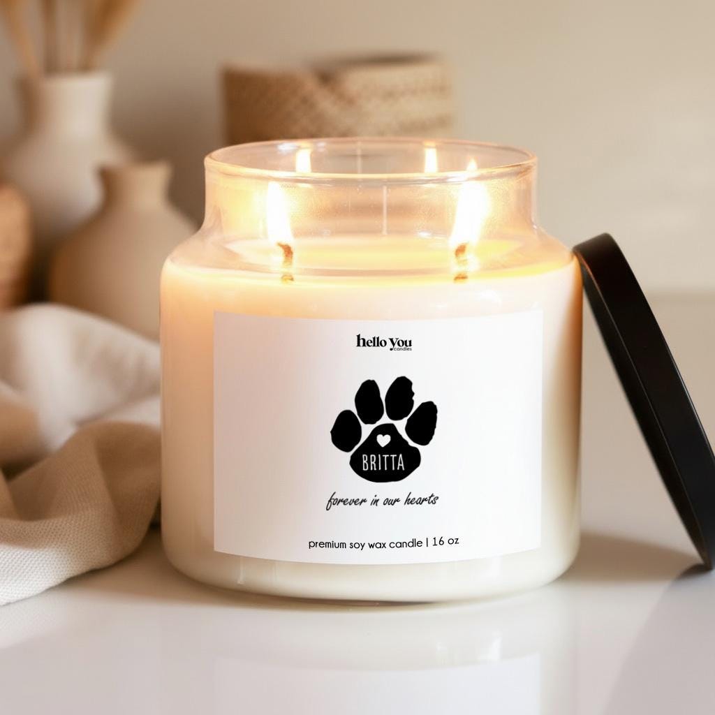 Honor the unconditional love of a cherished pet with our Pet Memorial Candle, a comforting keepsake designed to bring warmth and healing during difficult moments. Whether you're looking for a thoughtful Dog Loss Gift, a heartfelt Cat Loss Gift, or a soothing Pet Loss Gift, this candle offers a meaningful way to remember the paw prints left on your heart.