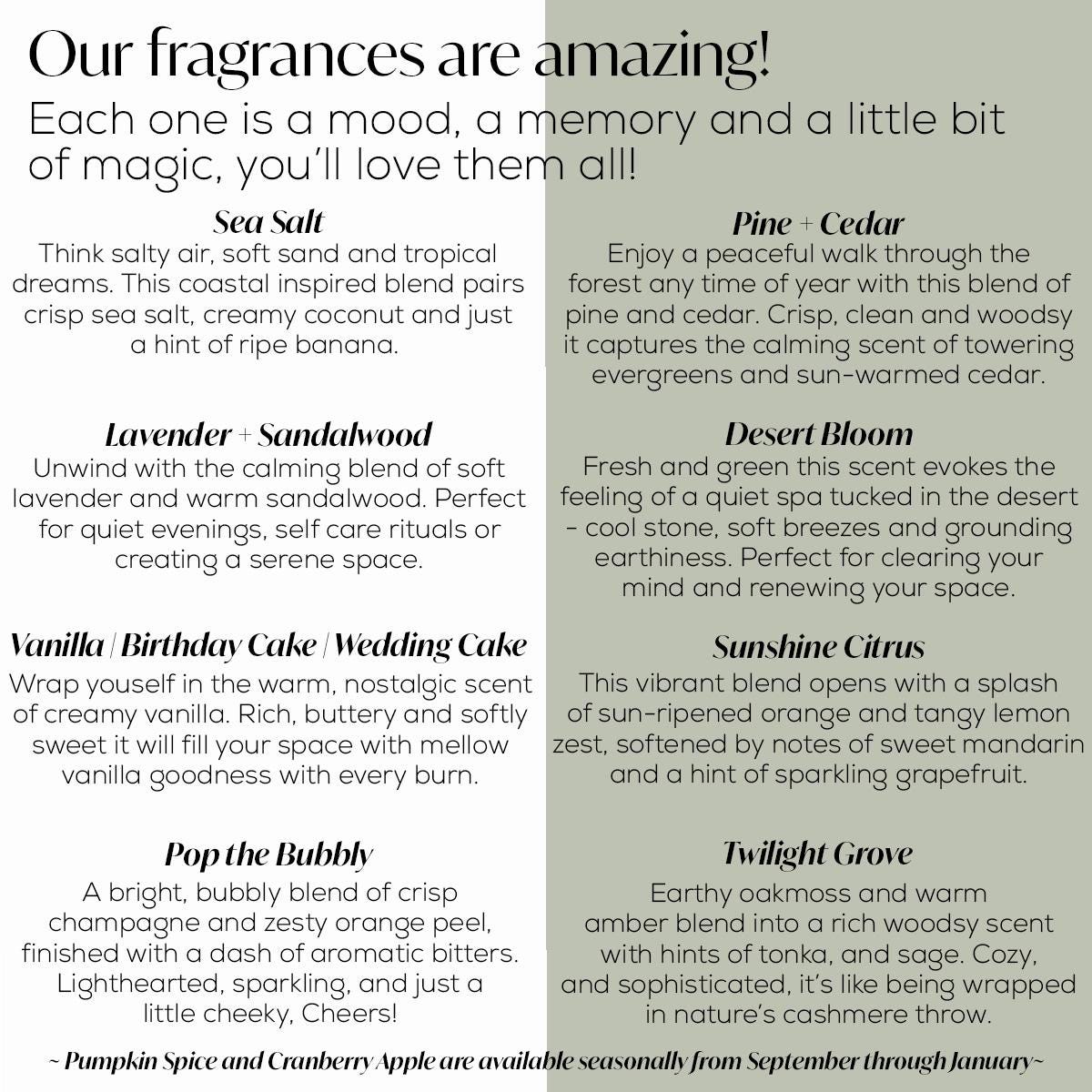 ~ 9 oz Candle Measures 2.8 x 3.5 inches - burn time approximately 50-60 Hours