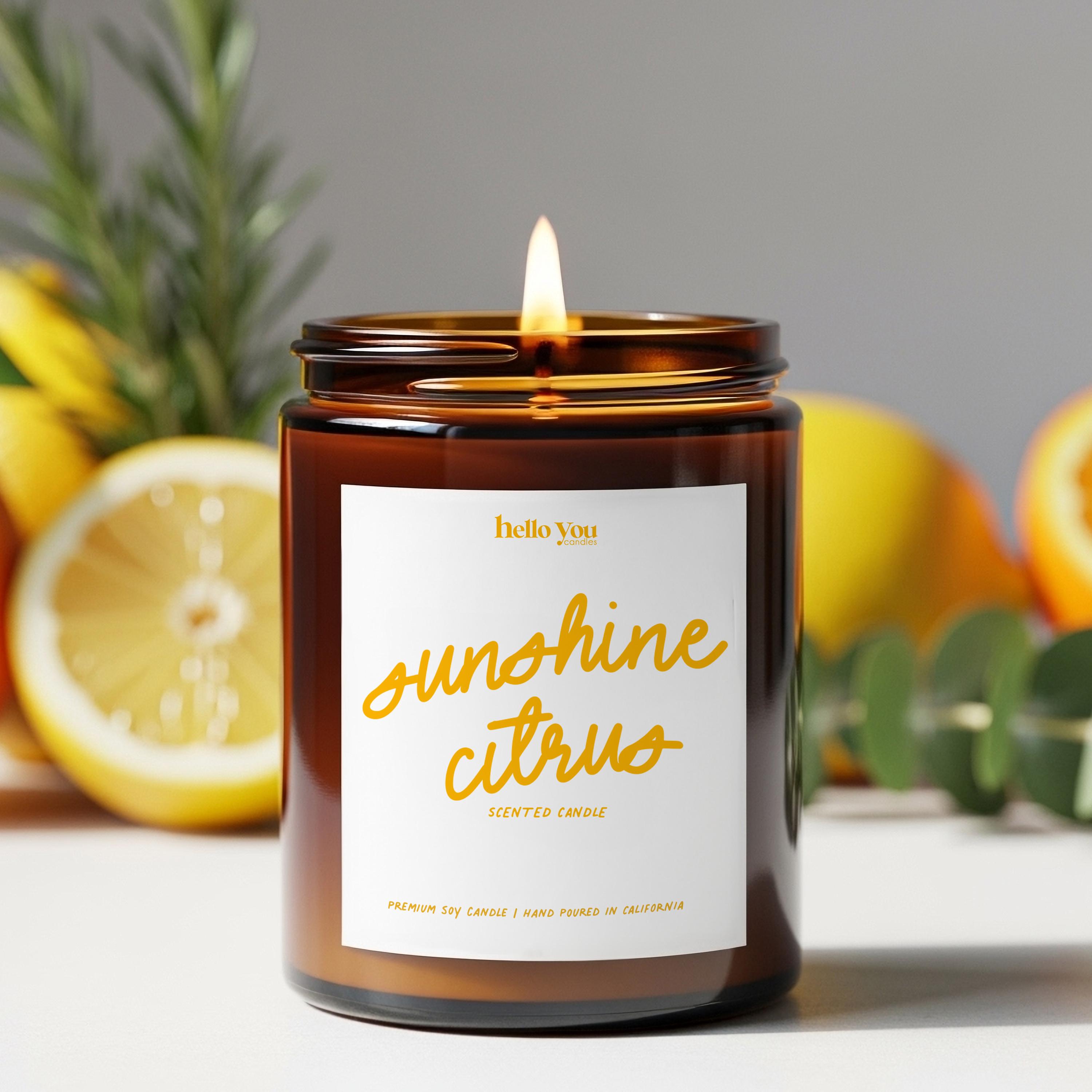 Our Sunshine Citrus Candle is a vibrant citrus fragrance that you will love all year long.  Notes of sun ripened citrus, peach and agave for an irresistible burst of brightness.  It is the perfect summer scented candle, kitchen candle, gift for teacher gift, end of year gift for school staff or lemon scented home decor candle.